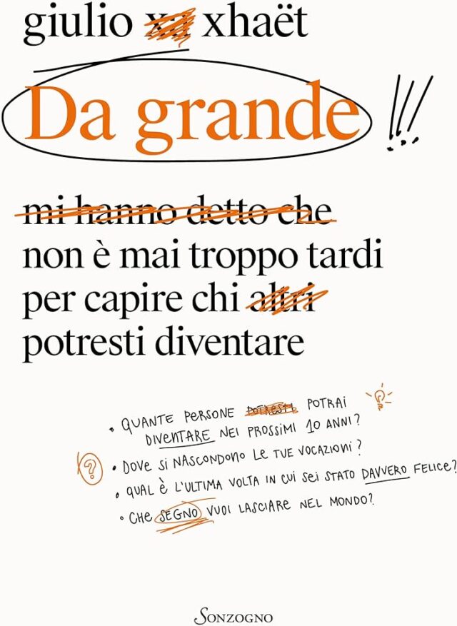 Chi l’ha detto che solo i bambini hanno il privilegio di chiedersi cosa potranno fare? Diventare grande significa, come scriveva il poeta Walt Whitman, diventare le proprie moltitudini nascoste, agguantando quello scopo che ci fa alzare la mattina con il sorriso largo e l’animo leggero. Giulio Xhaët, partner del Gruppo Newton, formatore e autore, lo ha vissuto in prima persona: ha imboccato molti sentieri sbagliati prima di trovare una strada che lo rappresentasse. Con il supporto di numerose ricerche e casi di studio, ci illustra come entrare nel flow della vita, in che modo conciliare passioni e talenti, ma anche come sfruttare al meglio i social e quali lezioni trarre dai fallimenti. “Da grande” è un percorso che ci spinge a scoprire la nostra vocazione per capire cosa vogliamo fare, chi vogliamo essere e cosa possiamo diventare, a qualunque età.